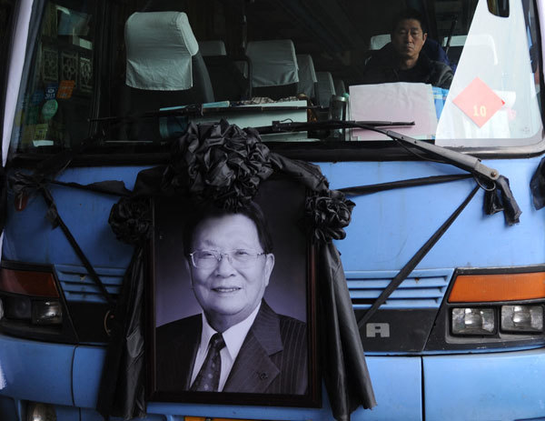 吳仁寶於1950年代到華西村當村委書記,1990年代,他在華西村掀起了一場社會主義革命。圖為2013年吳仁寶去世,華西村高調治喪。(Peter Parks / AFP)