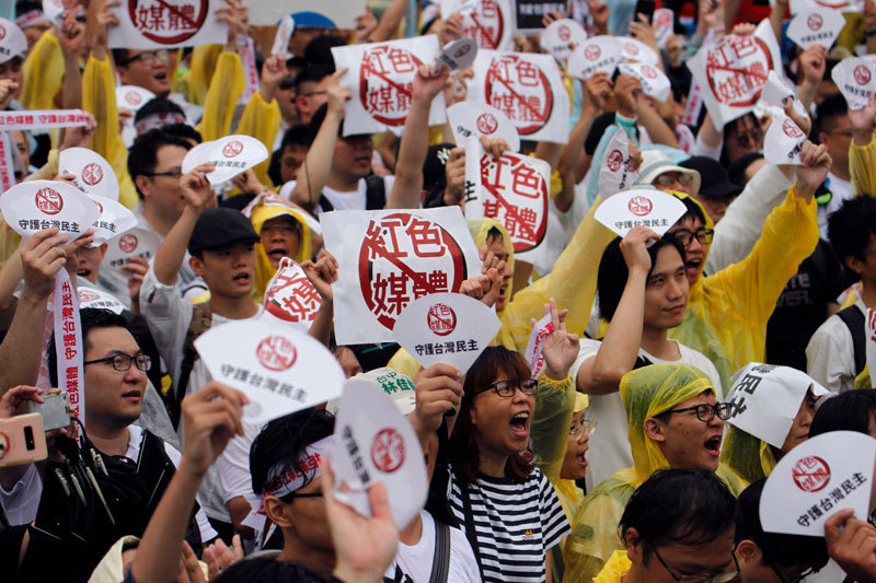 美國兩黨都支持臺灣,部分原因為臺灣是一個充滿活力的民主國家。圖為2019年6月23日,臺灣民眾參加「拒絕紅色媒體,守護臺灣民主」抗議活動。(Hsu Tsun-Hsu / AFP)