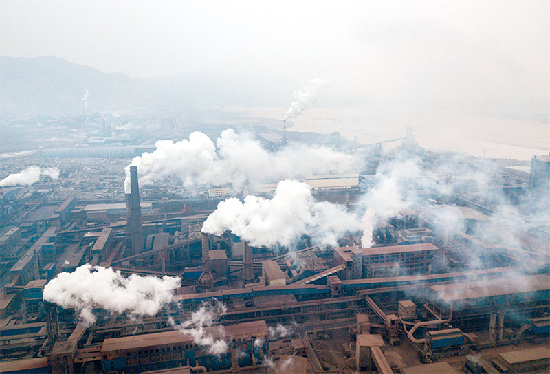 中國近幾十年以犧牲子孫後代發展機會為代價的虛假經濟繁榮。圖為2018年2月17日陝西省韓城的鋼鐵廠正在排放濃煙。(Fred Dufour/AFP)