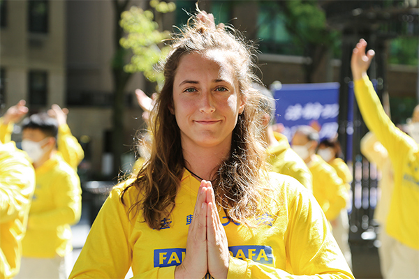 26歲、去年走入法輪大法修煉的紐約長島女孩妮可(Nicole Fiene)說,今天是她第一次參加「五一三」的遊行,心情非常激動,她從心底裡感謝法輪大法,因為法輪大法將她從黑暗的深淵裡,拯救了出來。