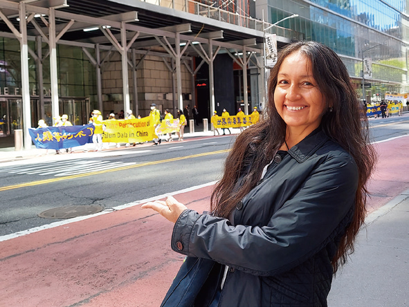 紐約人布蘭卡(Blanca)從遊行對伍中,感受到了強大的能量,「這就是我們所需要的。」她稱讚遊行平和地訴說真相,是紐約每年的「最好的風景」,「我一邊走一邊看這個美麗的遊行,大法就是神佛。」