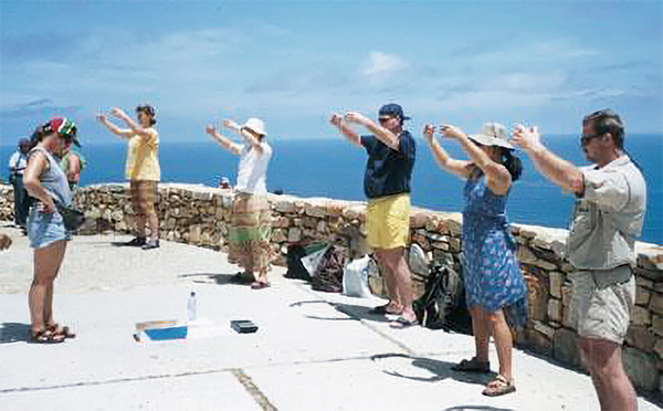 南非法輪功學員在開普敦好望角煉功。(明慧網)