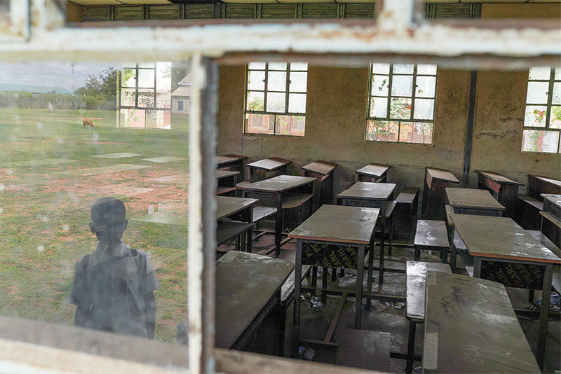 疫情爆發後,我們已經給孩子戴上口罩、關閉學校、把他們關起來。圖為2021年5月10日位於南蘇丹朱巴一所小學的教室裡空無一人。(Andreea Campeanu/Getty Images)