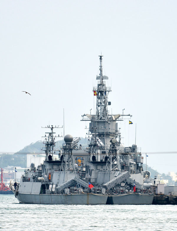 特朗普政府大幅增加對臺灣的武器銷售,達到150億美元,且西方輿論對中共的威權性質越來越敏感,因此要支持民主。圖為2015年12月17日兩艘美國製造的臺灣軍艦停靠在臺灣基隆海軍基地。(Sam Yeh / AFP)