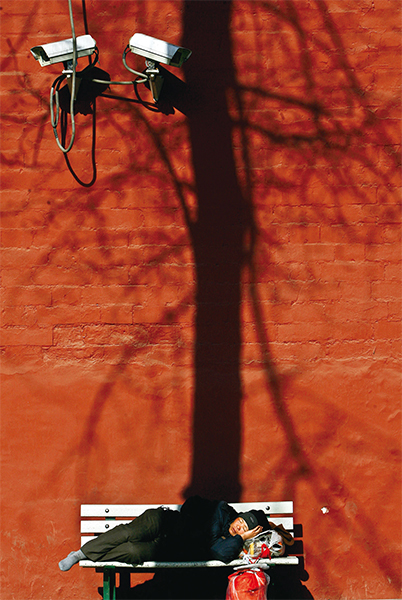 中華民族在自己的國土上被綁架囚禁了近一百年,必須在最短時間内把自己喚醒,解除禁錮,把共產黨從國土驅逐。圖為北京紫禁城圍牆前一名沉睡的婦女。(Teh Eng Koon / AFP)