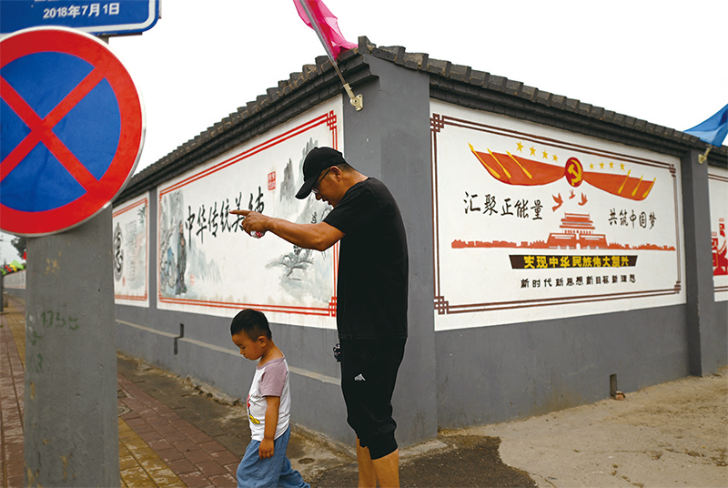 馬克思主義者採用極端矯情、暴力和欺騙的手法扭轉人的心理。古國人民被騙自己是新中國的主人,然而他們的真實身分卻是赤色中國待宰待割的奴隸。圖為2021年6月9日北京街頭宣傳牆面。(Noel Celis / AFP)