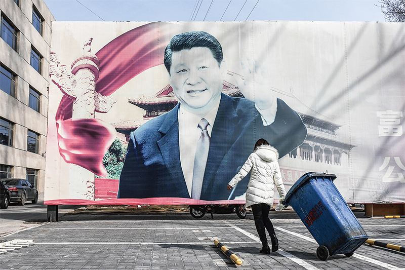 古語說「一葉障目,不見泰山。」對習而言,這一「葉」就是江曾安插在習身邊的親信、中共意識形態總管王滬寧給習灌的馬列主義迷魂湯。圖為2018年3月19日北京一停車場已褪色的習近平形象宣傳廣告牌。(Greg Baker/AFP)