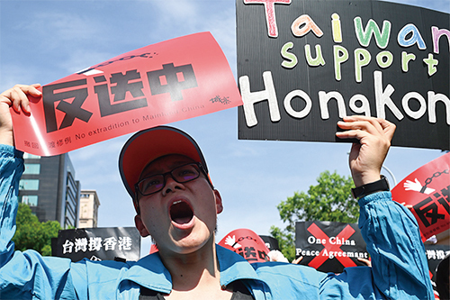臺灣堅決反對中共「一國兩制」。圖為數千名在臺香港學生及臺灣民間團體2019年6月16日下午聲援「616撐香港,反送中」活動。(Sam Yeh /AFP)