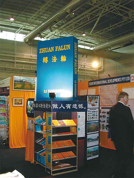 2002年「APA澳洲人書展」中法輪功書籍展位兩句話則引人深思:「未讀《轉法輪》,做人有遺憾」。(明慧網)