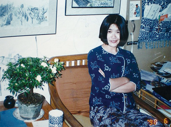 1989年天安門屠殺之前,她和同學們上街遊行,打出「新聞自由、言論自由」的標語。「六四」後,她不願意成為「黨的喉舌」,改行成了畫家。