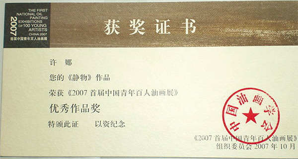 許那也被中央美術學院油畫系免試錄取為研究生,並在2007年以優秀作品獎入選首屆中國青年百人油畫展。