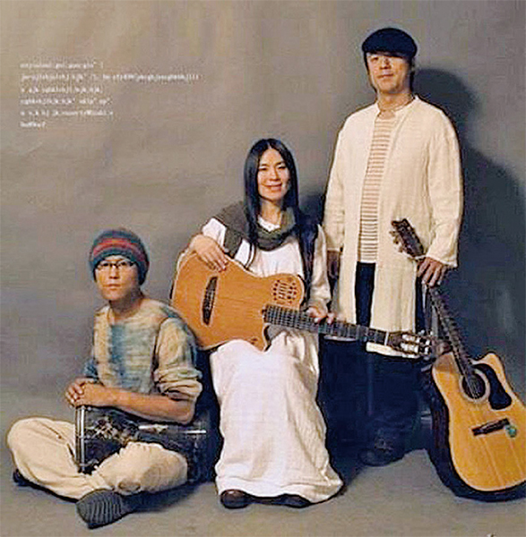 1998年,于宙(左)與黎強、小娟夫婦組建了民謠樂隊,叫「小娟&山谷中的居民」。(大紀元)