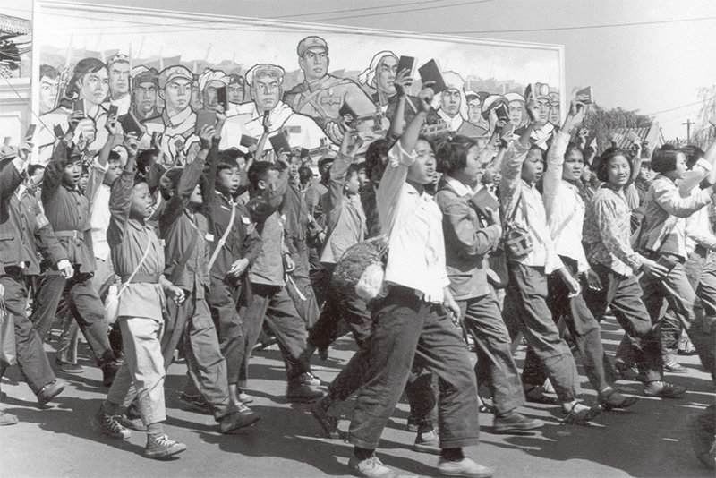 文革時,中共鼓動學生去鬥老師,紅衛兵把老師以所謂的階級敵人作為鬥爭對象。圖為拿著小紅書的紅衛兵。(Jean Vincent / AFP)