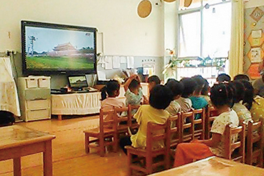 專家稱中共教育體系培養一代又一代的奴才,被完全洗腦成功的人就是徹徹底底的黨奴。圖為大陸某幼兒園組織三歲幼童看七一黨慶、習近平講話。(知情人提供)