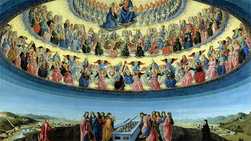 文藝復興早期義大利畫家弗朗切斯科.波蒂奇尼(Francesco Botticini)聖母升天,展現基督教的天堂觀。(公有領域)