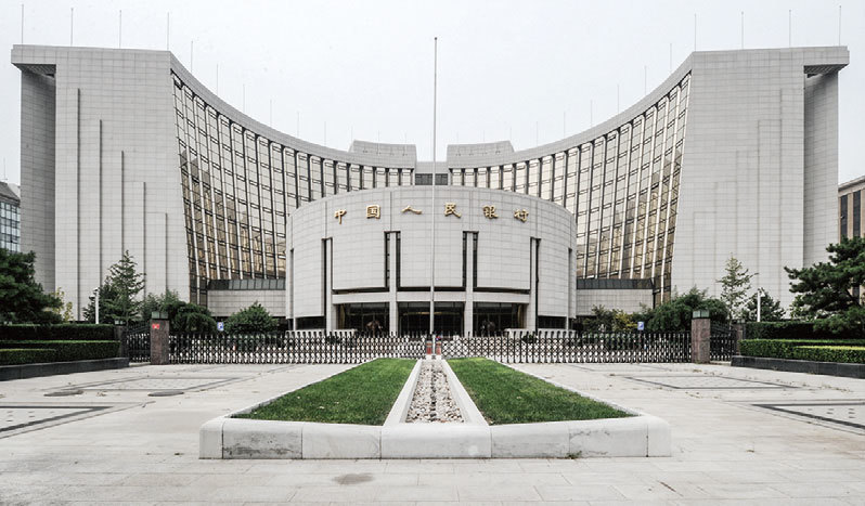 中國人民銀行在人民幣升值與貶值間陷入兩難。圖為中國人民銀行位於北京的總部。(Mark Ralston/AFP)