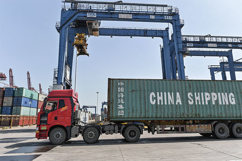 北京堅持進出口合同以人民幣結算。但是,只有當中共是協議中的主導方時,這些努力才成功。圖為2021年3月24日,江蘇省連雲港口集裝箱碼頭。(Hector Retamal / AFP)
