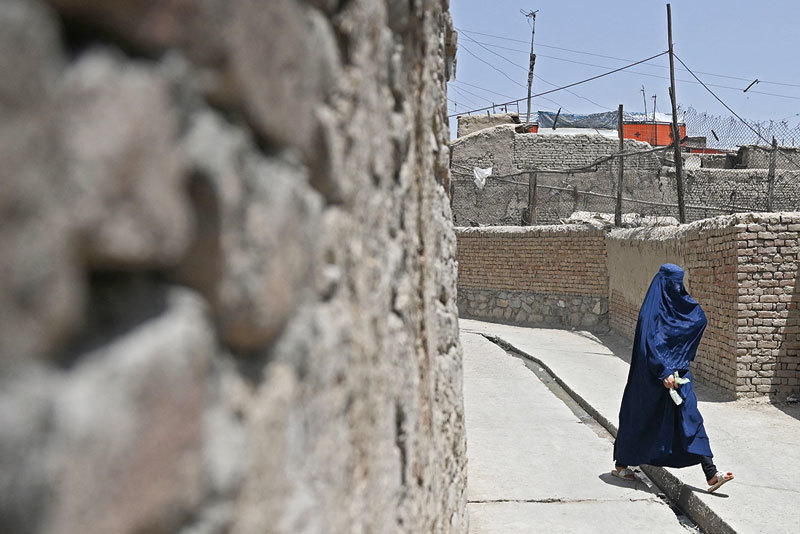 塔利班禁止許多前政權容許的女性就業及上學、電影、電視、音樂、舞蹈等活動。圖為2021年7月12日,一名阿富汗婦女走過喀布爾老城區的一條小巷。(Sajjad Hussain / AFP)