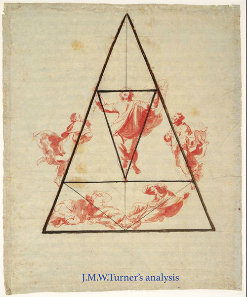 19世紀英國風景畫家威廉.透納(William Turner)1811年在英國王家學院教透視學時,曾經用金三角分析〈基督變容〉的構圖。但我認為他就技巧分析這張畫的構圖,忽略了拉斐爾精神層次與內涵。