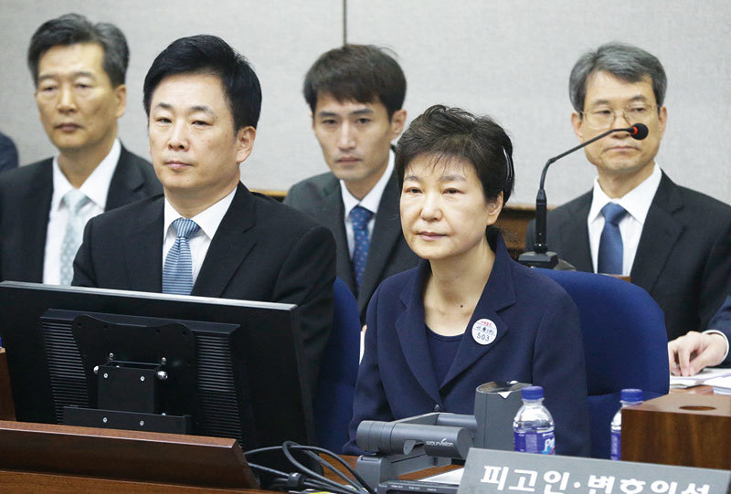 韓國前總統朴槿惠接受了大約7700萬美元的賄賂,2021年1月被韓國大法院判刑20年。圖為2017年5月23日,朴槿惠在首爾中央地方法院出庭受審。(Ahn Young-joon / POOL / AFP)