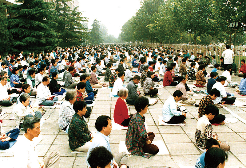 中共前黨魁江澤民在1999年下令鎮壓法輪功,由於鎮壓行動受到多數人的反對,江急需各界表態,尤其需要佛教界和名僧出面支持鎮壓並詆毀法輪功。圖為1998年北京法輪大法學員一次大煉功場景,約2000人參加。(明慧網)
