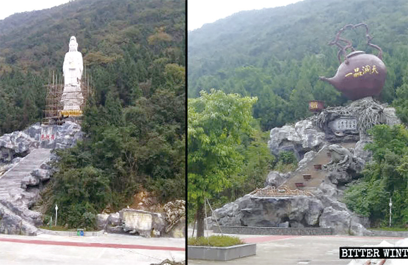 對於矗立在戶外的大型佛教造像,中共利用衛星進行監測。不論造像位於何方,只要能被人們看見,就以「非宗教場所不許有造像」為由,一律勒令拆除。已知被強拆的佛像有河北的一尊彌勒像、內蒙古的一尊釋迦牟尼像等。有些佛教造像則被迫改建以避免被拆除,例如山東一尊菩薩像變身為孔子、遼寧一尊菩薩像幻化成嫦娥、福建的菩薩隱身在假山內,而代替四川一尊菩薩像出現的,是一把大茶壺。