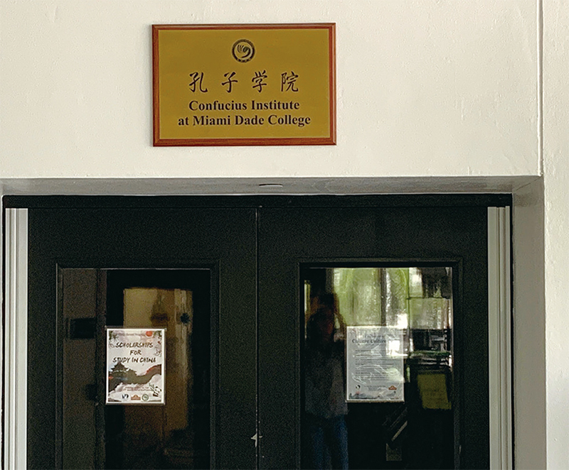 中共之前在海外拚命設立「孔子學院」,作為大外宣的洗腦統戰工具,因為已被各國認清其真面目,紛紛抵制要求撤校而失敗。圖為邁阿密戴德學院校區內的孔子學院辦公室。(Malury Imbernon/大紀元)
