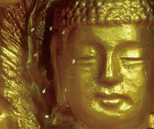 據《中阿含經》、《法華文句》、《華嚴經》等佛經的記載,在釋迦牟尼涅槃後三千年左右,人間會出現一種花叫「優曇花」。圖為2007年韓國全羅南道順天市海龍面的須彌山禪院的佛像上長出的優曇婆羅花。(徐良玉╱大紀元)