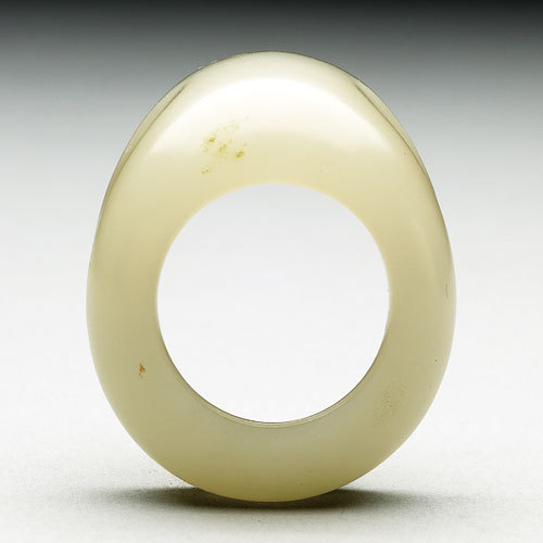 玉韘。韘的用途原是射箭時佩帶在姆指上,用以鉤弦的工具,但後來僅存其母型而不具其功能。(臺北故宮博物院提供)