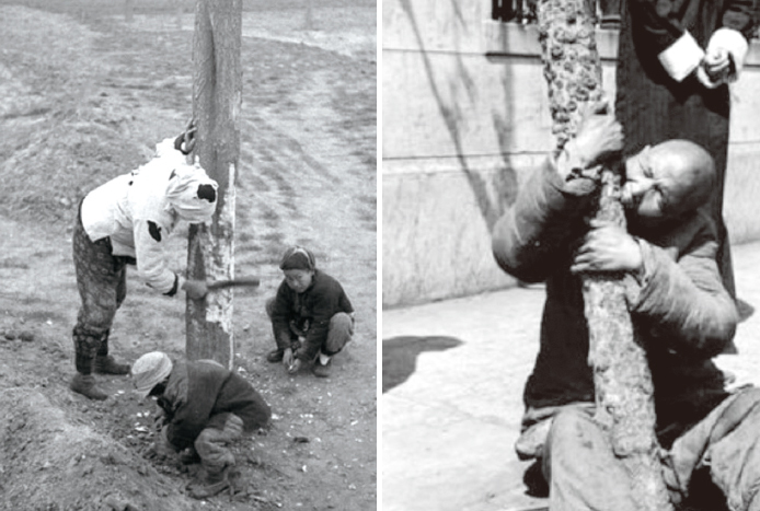 大饑荒期間,中共把農民的口糧、救命糧,甚至連種子都搜刮一空。沒糧吃的農民開始吃樹葉草根、啃樹皮,尋找一切可以果腹的東西。(網路圖片)