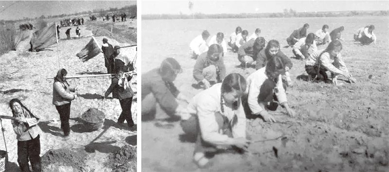 在一句「人有多大膽、地有多大產」的鼓動下,各種異想天開的農耕方式紛紛出籠,例如密植、少種高產多收等等,瞎搞的結果當然導致糧產大減,於是就用吹牛造假、虛報數字來補救。糧產大躍進式的翻倍暴增,從原本每畝平均正常產出三四百斤,一路攀升到畝產千斤、畝產萬斤,最高的紀錄是畝產12萬斤。各地豐收的捷報一波比一波精采,舉國歡騰,陷入失去理智的狂熱。