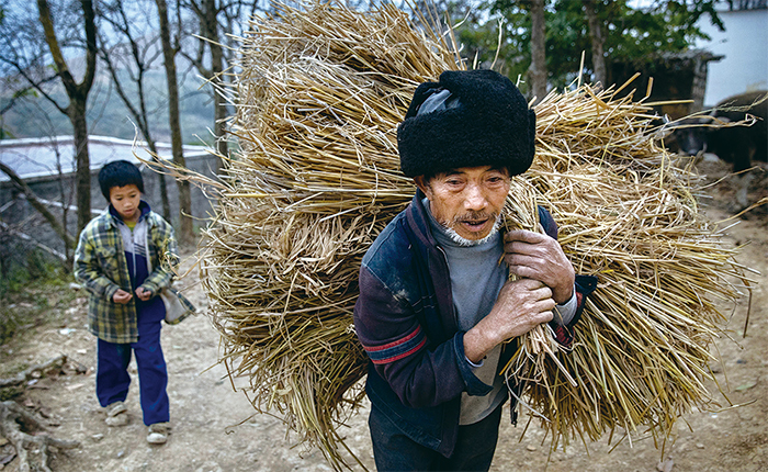以湖南某村為例,這個小農村在1985年有132人,其中青年約占一半;到了2015年,全村只有54人,基本以老幼為主。村裡的水田插秧率不到十分之一,其他都已逐漸改為種玉米,稻米不夠吃就去鎮上買;旱地的耕作已經全靠農藥和除草劑,連續多年使用後,土質異化地力下降,莊稼產量大減;最後只能種茶葉或油茶,用最簡單的方式種植只是表示該土地是有主物。與農作物的生長狀況相反的是野生的動植物:樹木肆意生長造成農田光照不足,林中各種動物則和人類爭奪食物。