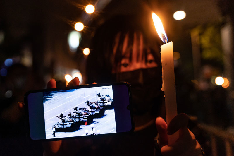 32年來,紀念六四已成為香港的文化。圖為2021年6月4日香港市民在維園附近散步時舉起蠟燭。(Anthony Kwan/Getty Images)