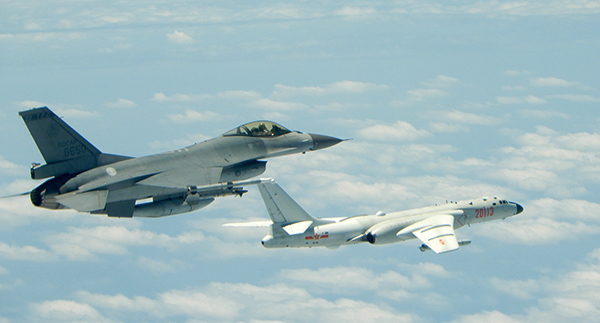 近期,中共派出軍機侵擾臺灣西南空域,引發臺海局勢緊張。圖為資料照,中共轟6K等型機實施遠海長航訓練,空軍派遣F-16戰機保持監控。(臺灣空軍司令部提供)