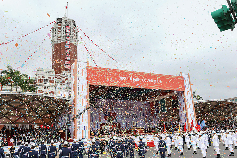 中華民國陸委會駁斥中共,「辛亥革命紀念日就是中華民國國慶,國父與無數革命先烈創建了中華民國,中華民國迄今屹立不搖」。圖為2020年10月10日中華民國在總統府前廣場舉行109年國慶大會。(林仕傑/大紀元)