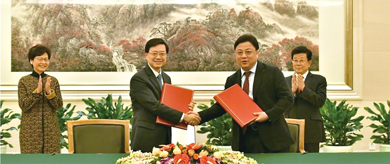 「反送中」期間,孫力軍曾坐鎮香港操控香港黑警。圖為2017年12月14日,香港保安局局長李家超(左二)與孫力軍(右二)於在北京簽通報機制。(政府新聞處)