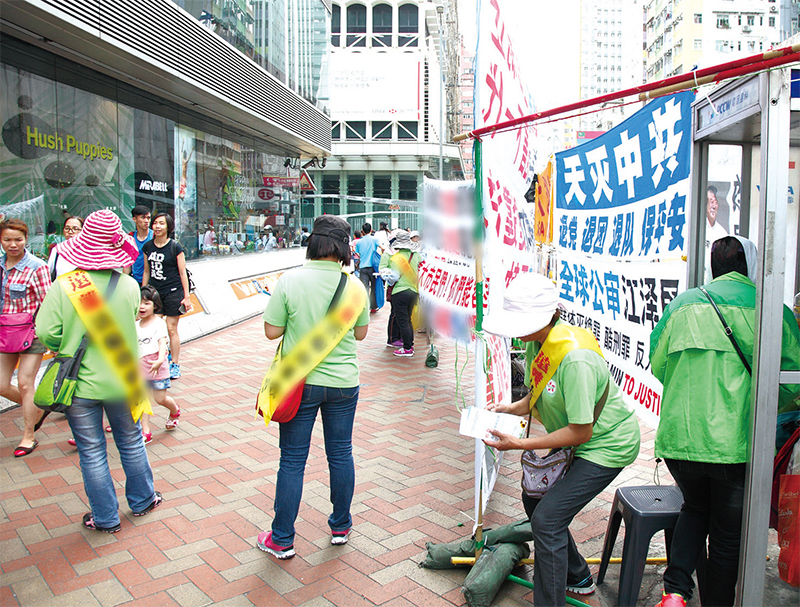 青關會是「610辦公室」在港的分支機構,從2012年開始,青關會僱人侵擾多個法輪功真相點,使出多種粗暴流氓招術。2020年12月31日青關會解散。(潘在殊/大紀元)