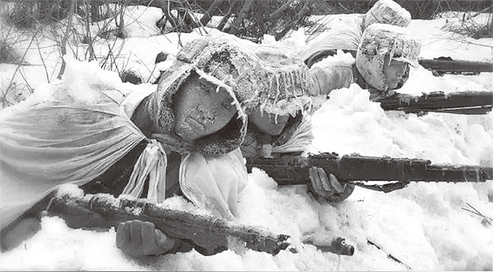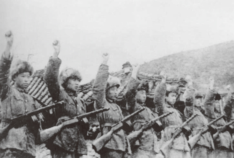 長津湖戰役前,中共軍隊誓師出戰,當時氣溫零下30攝氏度,但官兵僅穿單衣。因為沒有棉衣、缺少食品補給而凍餓交迫死傷很大。(維基百科)