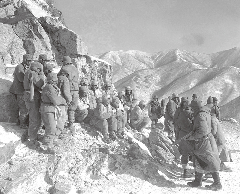 有6000多親共戰俘決定回中國,1萬4000名反共戰俘堅決去臺灣。圖為長津湖戰役中,志願軍某連排殘部向美國海軍陸戰隊第一師第七團第一營Charley連投降。(公有領域)