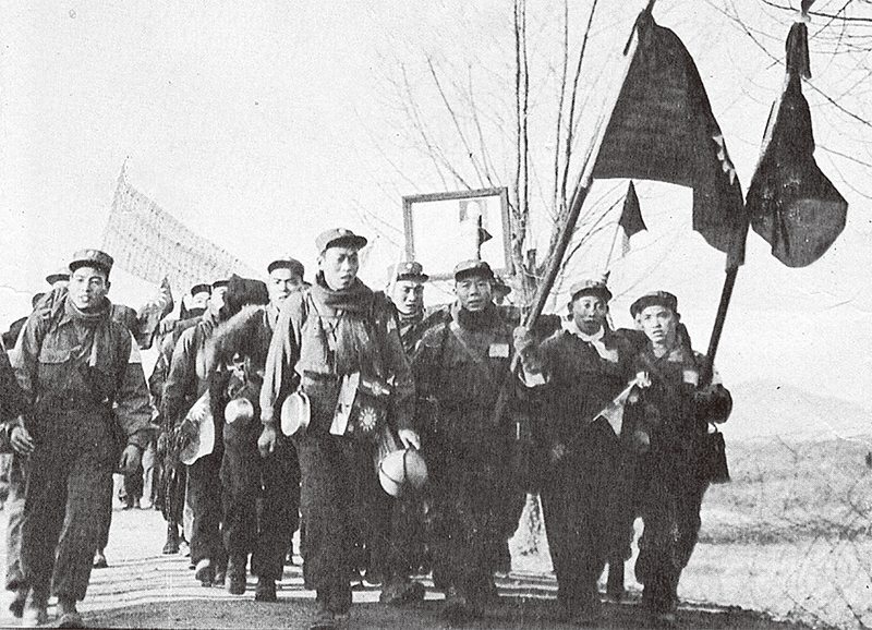 1954 年1 月23 日,美軍正式將1 萬4220 名戰俘移交中華民國。圖為反共戰俘赴臺。(公有領域)