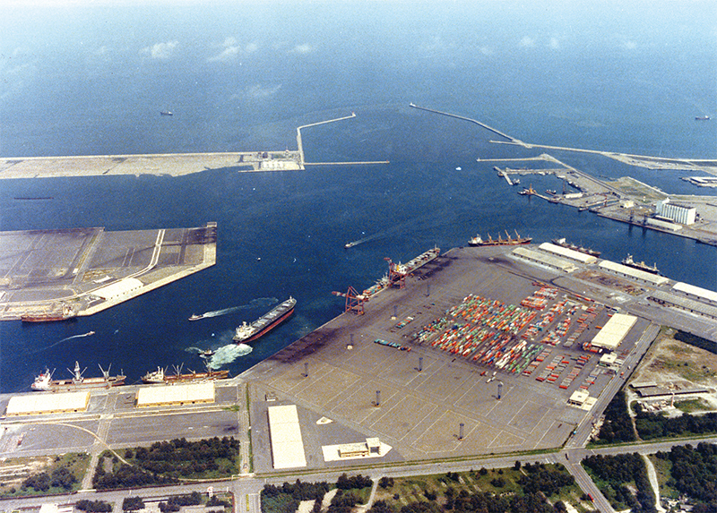 1973年臺灣前後先後展開「十大建設」。圖為十大建設之一臺中港的施工照片。(國家發展委員會檔案管理局提供)