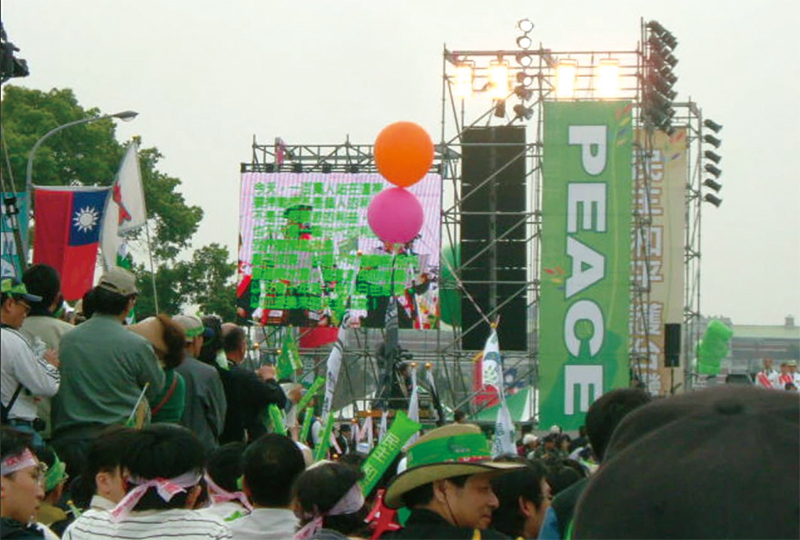 2005年三二六護臺大遊行,估算遊行人數超過100萬,是臺灣歷史上少見的大規模遊行活動,表達對中共《反分裂國家法》的強烈抗議。(臺灣少年/維基百科)
