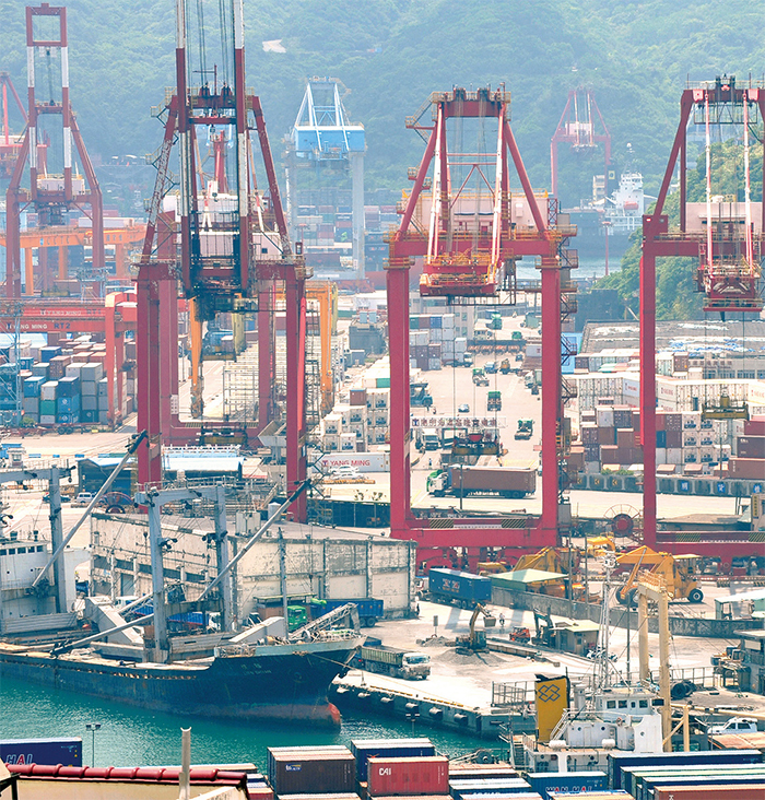 儘管臺灣海峽戰亂不斷,但是臺灣的經濟增長迅速。圖為2011年8月8日,繁忙的基隆港碼頭,起重機將貨櫃裝載到船上。(Patrick Lin / AFP)