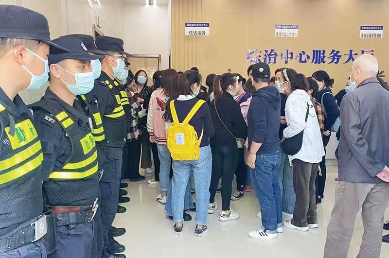 中共「雙減」政策出臺後,多家教育機構跑路,引發維權抗議事件。圖為南京知名的培訓機構長頸鹿美語老闆以雙減政策為藉口,捲款跑路,家長維權無果。(受訪者/大紀元)