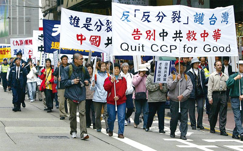 2005年3月26日,香港民眾聲援臺灣百萬人大遊行抗議中共「反分裂法」。(Thomas Cheng / AFP)