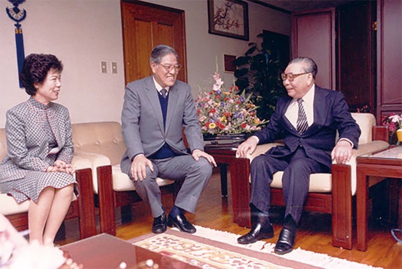明居正表示,對中國的開放,經國先生的最後一兩年,他的口子已經開了,李登輝時代最後開大了。圖為1984年蔣經國總統蒞臨大安住所致賀李登輝當選副總統。(臺灣總統府)