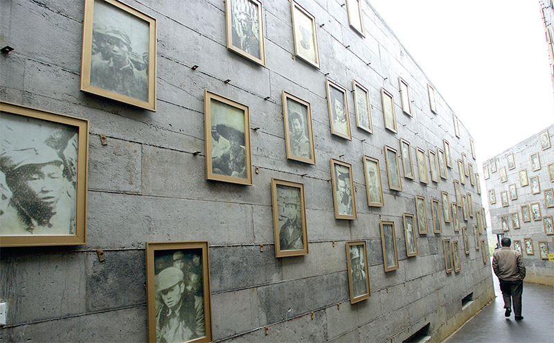 國共對抗激烈時,中共當時文宣主軸是抗日;現在文宣主軸是中國崛起跟抗美日。核心都是民族主義。圖為2005年12月13日,掛著戰俘畫像的四川省抗戰博物館。(Liu Jin / AFP)