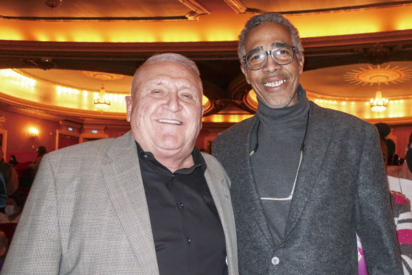 2021年12月3日晚,音樂製片人Don Hunter Powell (左) 和作曲家Ed Brown觀看了明尼阿波利斯市奧菲姆劇院(Orpheum Theatre)的首場演出。(攝影/唐明镜)