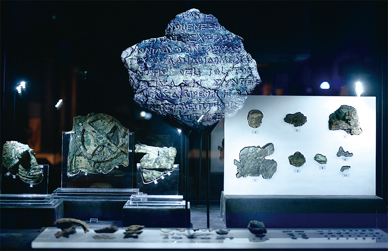 公元前200年至公元前100年間,由古代希臘人創造的安提凱希拉裝置被認為是人類歷史上第一臺計算機。圖為雅典考古博物館所收藏的安提凱希拉機械裝置的碎片。(Louisa Gouliamaki / AFP)
