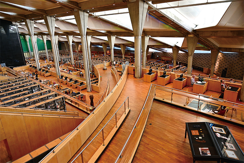 位於埃及亞歷山大圖書館,是古代亞歷山大圖書館的現代紀念館。(Giuseppe Cacace / AFP)